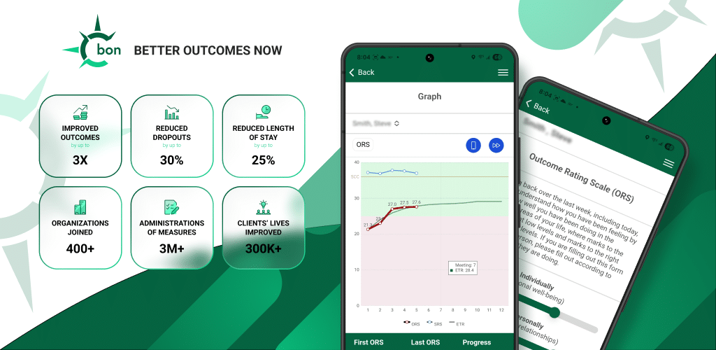 And now the best software application of PCOMS and MBC just got better—a convenient mobile app for clients and therapists. All the clinical components of BON are now at your fingertips on any Apple or Android device. The mobile apps are for BON subscribers only.